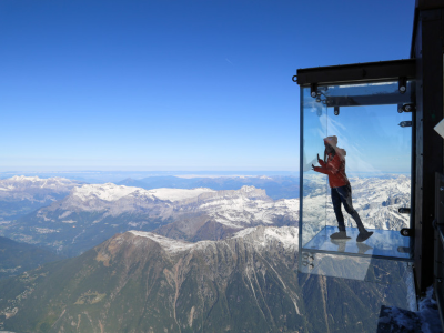 The cable car which reaches the Aiguille du Midi leaves from Chamonix at 1035 meters and arrives at 3842 meters where the panoramic terraces offer a 360° view over the whole mountain range of Italy, France and Switzerland. Through a lift it is possible to reach the highest terrace with a spectacular view over Mont Blanc.